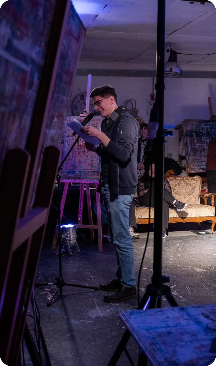 Wir bieten Raum für alle, die eigene Texte lesen möchten. Egal ob du zum ersten Mal auf der Bühne stehst oder schon Erfahrung hast. Meld dich einfach bei uns via Instagram oder Facebook, oder sprich uns direkt bei einer Veranstaltung an.